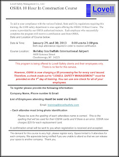 Save the Date! The OSHA 10-Hour In Construction Course, Buffalo, NY, January 29th and 30th, 2013.