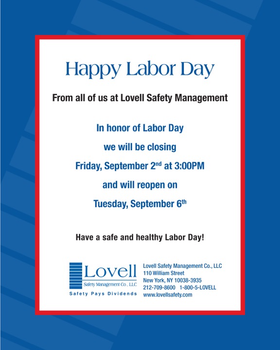 Labor Day Message from Lovell Safety Management Co., LLCSeptember 1, 2016/in Uncategorized/by Lovell Safety Management https://lovellsafety.com/wp-content/uploads/2022/05/Lovell_Logo-small-Recovered-2-300x117.png 0 0 Lovell Safety Management https://lovellsafety.com/wp-content/uploads/2022/05/Lovell_Logo-small-Recovered-2-300x117.png Lovell Safety Management2016-09-01 09:28:002024-08-14 10:04:27Labor Day Message from Lovell Safety Management Co., LLC