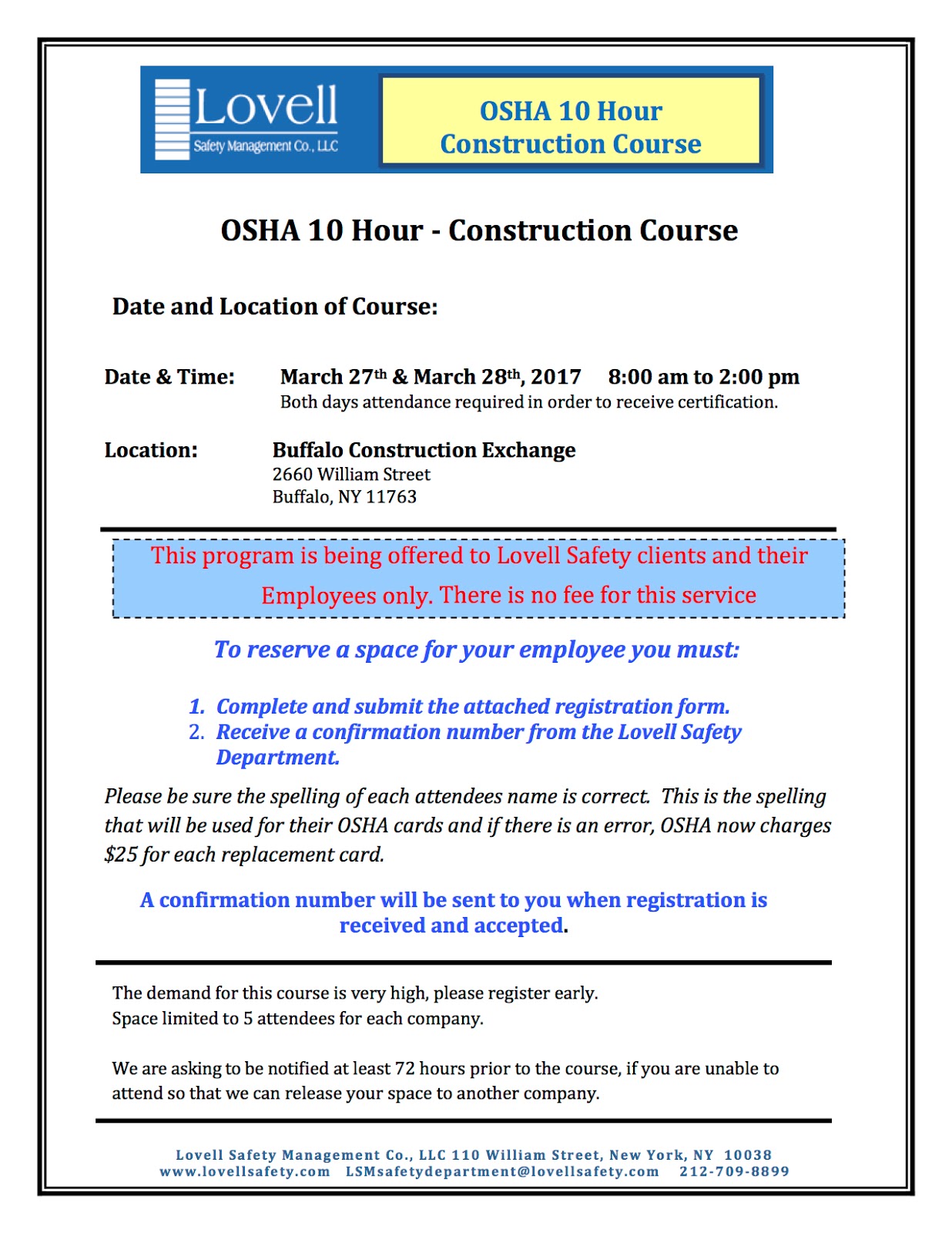To aid in your compliance with the various Federal, State and City regulations requiring this training, the LSM safety department is once again offering the OSHA 10 Hour Course. The course is provided by our OSHA certified instructors. Each employee who successfully completes the program will receive a certification card from OSHA.