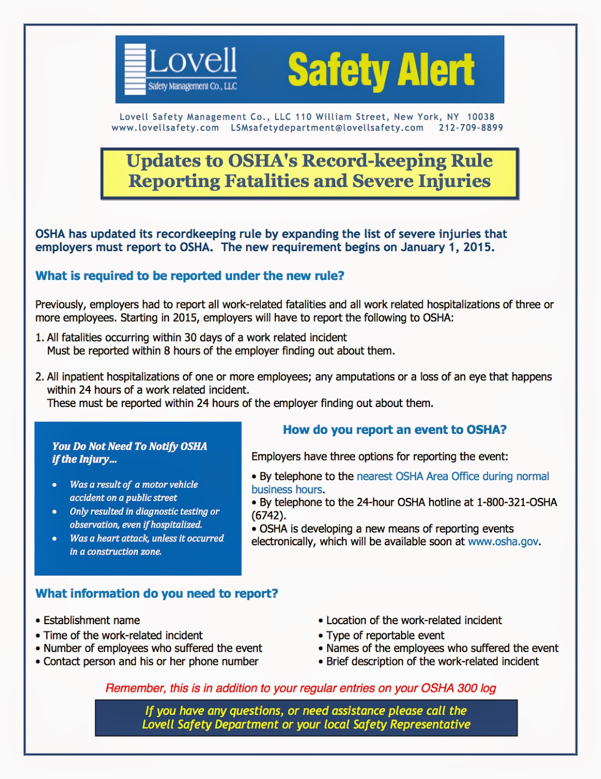 We have added new information on Forklift Safety, and Winter Safety. You can view the new information by clicking here.